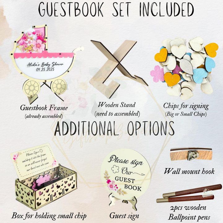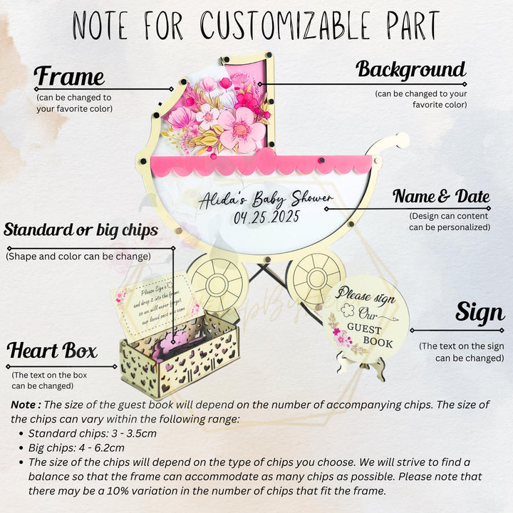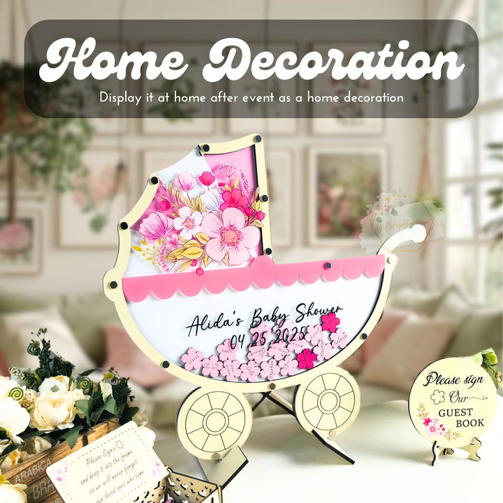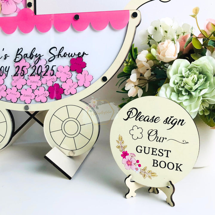 Baby In Bloom Baby Shower Guest Book Alternatives Custom Baby Stroller Guest Book for Gender Reveal Party Baby In Bloom Shower Decorations Baby Shower Guest Book Frame