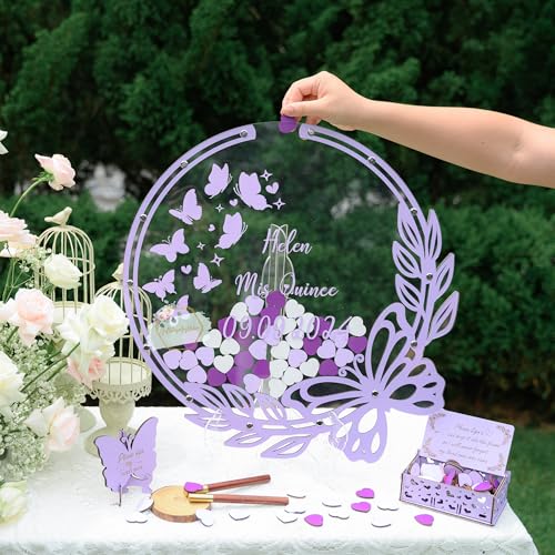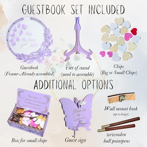 - [Easy Customization]: Tailor your Custom Guest Book to suit your event theme. Choose from a variety of frame colors, chip shapes (such as hearts or butterflies), and patterns to make it truly unique. This Guest Book Heart Drop design ensures your celebration is beautifully personalized.