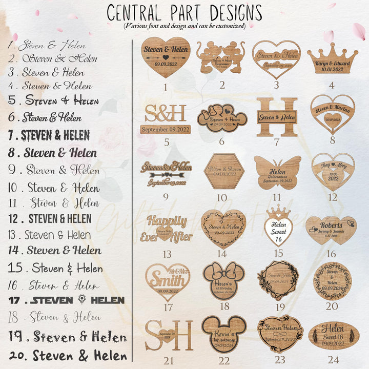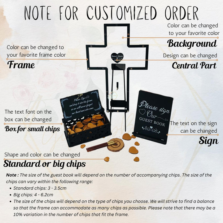 - Easy to Customize: Select the guest book size based on your guest count. Each product is tailored to individual orders, taking into account customer preferences. Customize the product as you desire. You can choose one of the designs with your name or initials and date as you wish with different shapes of center inside.