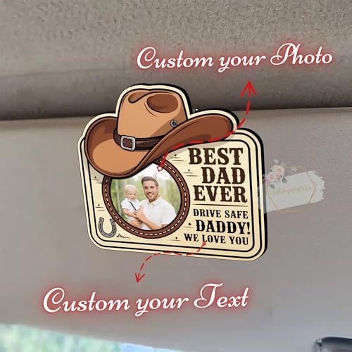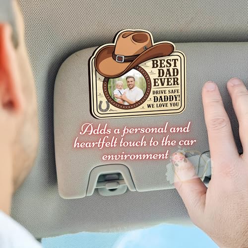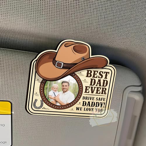 - Custom Cowboy Photo Clip for Car Visor: Slide in your favorite photo of dad or papa into this western-inspired car visor photo clip. Strong magnets and an acrylic face protect the image, creating a secure car photo frame with heartfelt flair.