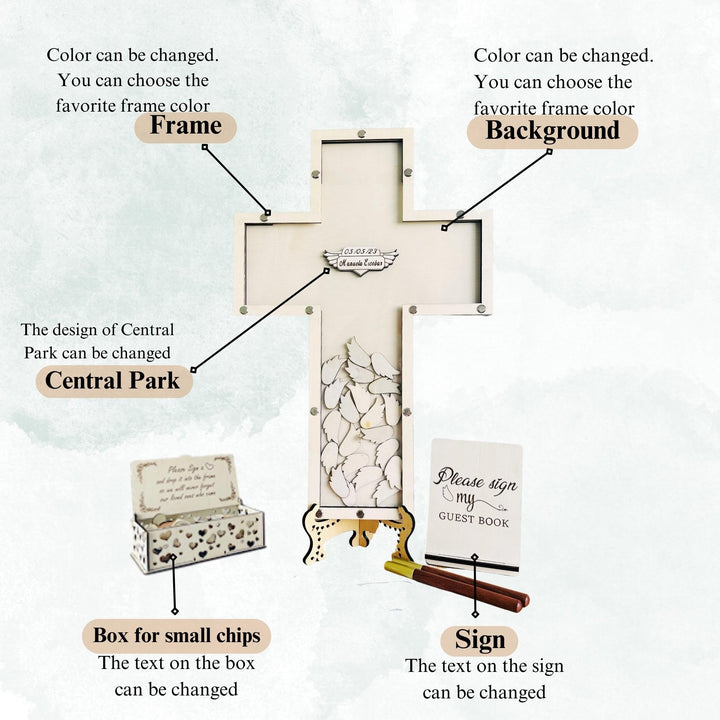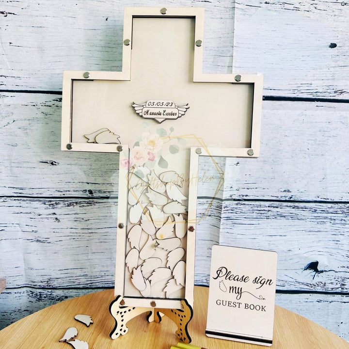 Cross Wedding Guest Book Alternative for First Communion and Religious Occasions, Customized First Communion Cross Personalized Wedding Guest Book For Wedding, Birthday, Faithful Memories