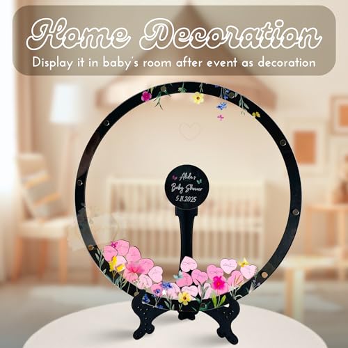 Custom Baby in Bloom Guest Book Frame | Personalized Circle Floral Baby Shower Sign-In Alternative | Wooden Keepsake for Nursery Wall Art & New Baby New Mom Gift