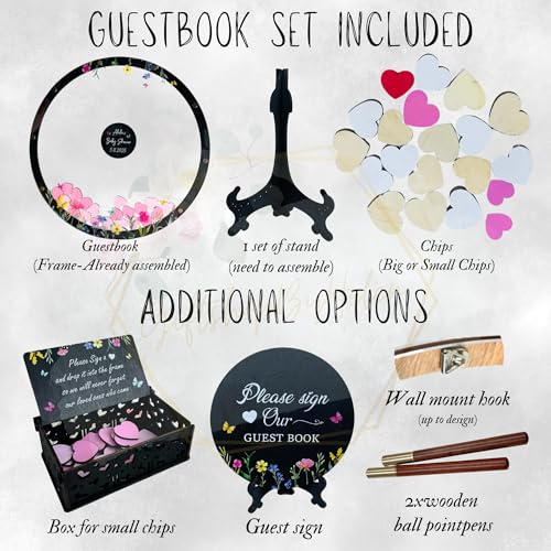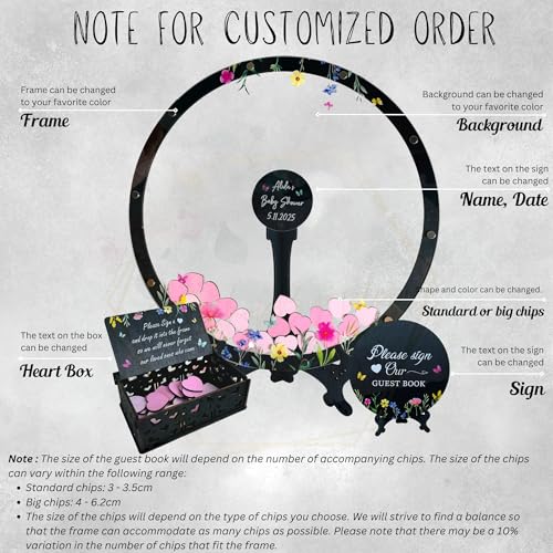 - ✨ [Easy to Customize]: Choose the size of the guest book according to the number of your guests. Add your names, your date, your color, choose chip shape, chip colors, and frame finish to match your party aesthetic. We create each product according to an individual order and take into account all customer wishes. So, the customer themselves configures the product as they wants.