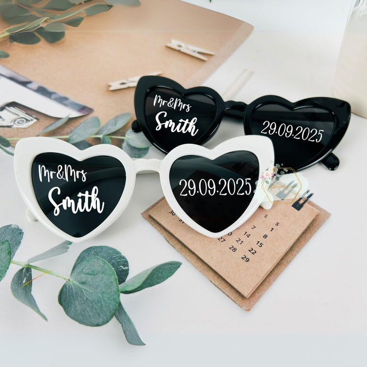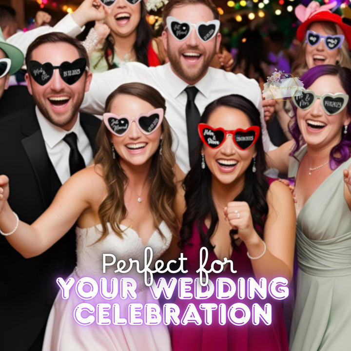 - ๐ Chic & Playful Wedding Party Sunglasses โ Add style to your celebration with custom heart sunglasses personalized for your wedding, bridal shower, or engagement bash. A fun touch for bridesmaids, guests, and the whole crew!