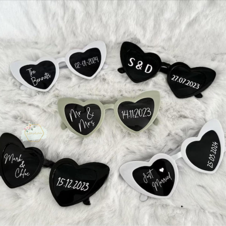 Custom Heart Sunglasses for Wedding Guests, Heart Shaped Sunglasses Bulk Pack, Personalized Bridal Shower Favors, Black White Pink Red Green Purple Heart Glasses, Wedding Photo Booth Props