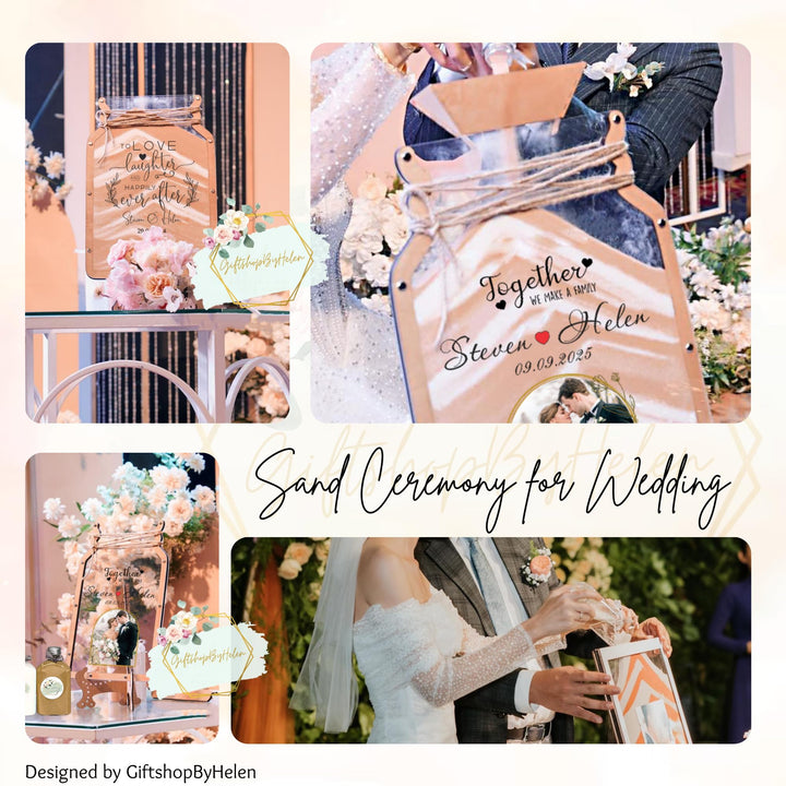 Custom Mason Jar Unity Sand Frame for Sand Unity Ceremony, Wedding Sand Ceremony Set, Personalized Blended Family Sand Kit Wedding Sand Ceremony Sets Unity Sand Pouring Ceremony Set for Wedding