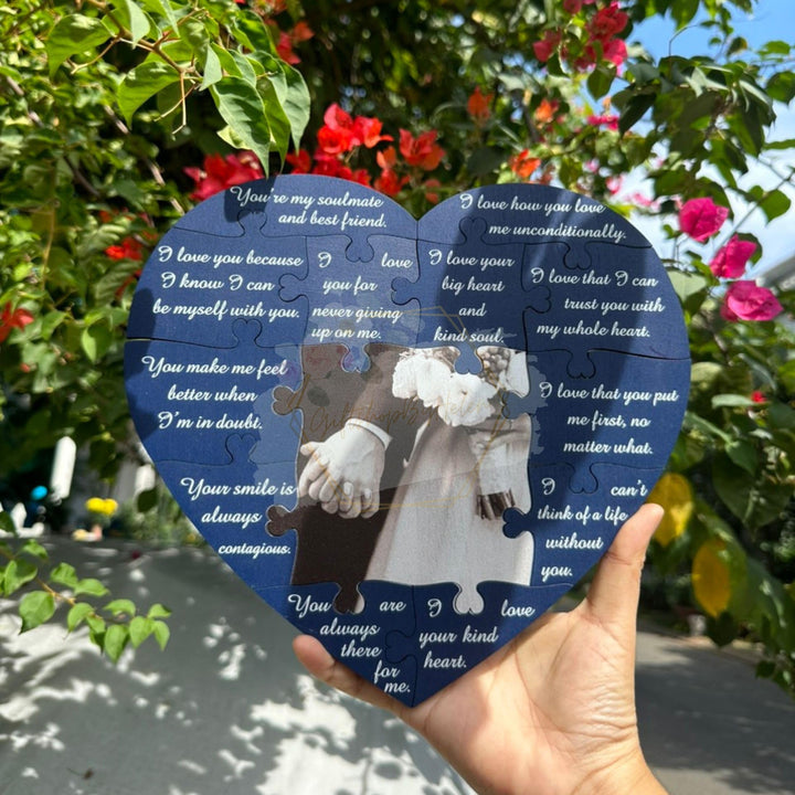 - Personalized Heart Puzzle: Transform this heartfelt love gift into a genuinely unique and charming piece through customization. We're confident that the most heartfelt sentiments come from the soul. You also have the option to include your names, important dates, or your preferred personalized messages, which we will beautifully feature on the front of the box. This will undoubtedly make your gift exceptionally one-of-a-kind and deeply touching.