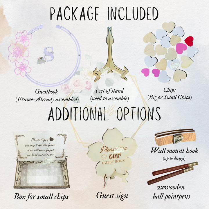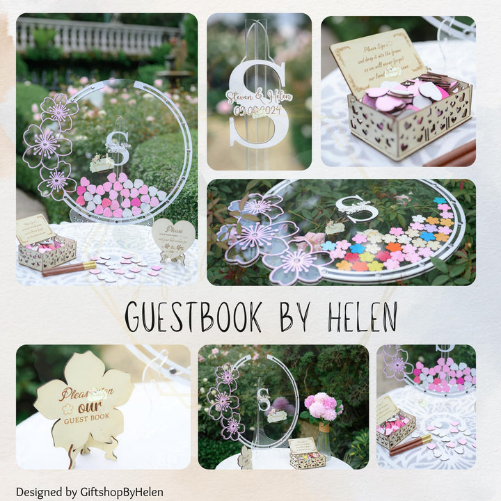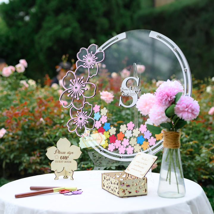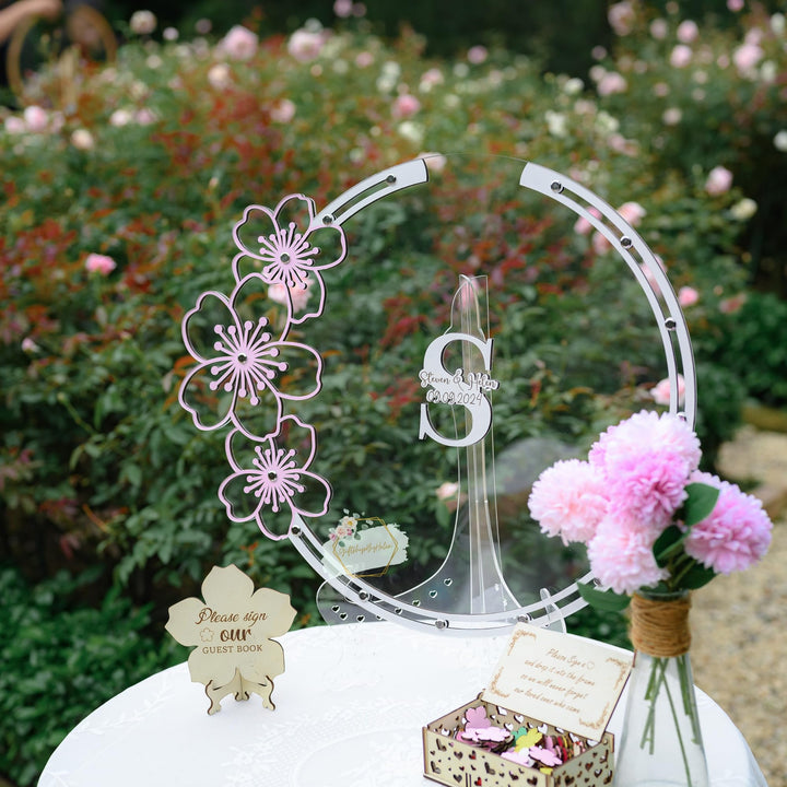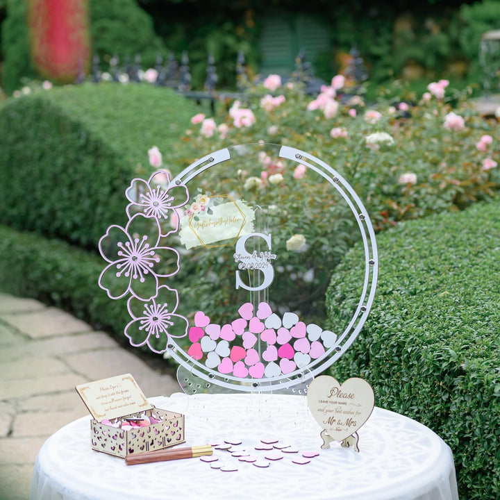 Custom Wedding Guest Book in Cherry Blossom Tree Frame, Personalized Guest Book Alternative for Memorial Celebration, Unique Drop Box with Custom Heart Sign, Floral Guest Book Wedding Reception