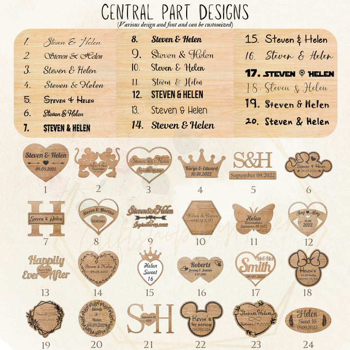- Complete Guest Book Set: Includes a durable wooden frame, frame sizes range from 9.8 inches to 23.6 inches, 25-150 wood pieces depending on frame size, a sturdy stand, heart box, and sign.