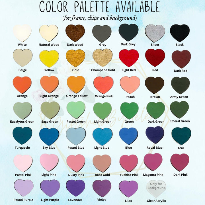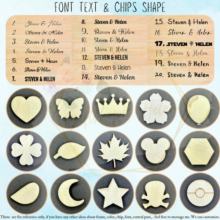 Details: Guest Book can range from house parties with family members to significant events the goal is to celebrate that the person is entering a different stage in their life. In this guest book, your guests can write personal messages to you sending their love and best wishes to you moving forward with your next chapter in life. This will be a place to keep memories of the messages that guests shared with you. After the party, you can use the frame as a decor in your home. Chip size will depend on the type of chip you choose. We have the following chip models: heart, butterfly, leaf, maple leaves, 5 leaf flower (cherry bloomson), pokemon, star, fish, circle, petal, sun, mouse, moon. The back frame is made from premium plywood or it can be clear with Acrylic and the front is finished with Acrylic. Each set includes: - Guest book -Stand - Small chips - A box for small chips is optional. The size of chips and guestbook depends on the number of chips. Size Of Guest Book (with Standard chip - Size of chips: 3.0cm - 6.0cm. The size of the chip depends on the shape of the chip you choose). Pay Attention: That color and texture of wood can little differ from the listing presented on a photo. Each piece of wood has unique structure and texture. Total color of a product depends on it. You can choose the size, color, shape, accessories in the options panel. Also settings of your monitor can influence a color rendition. We will send you the design for your confirmation and further adjustments if needed. We will proceed with the order if we do not receive a response from you after one day. Therefore, please check your messages regularly.