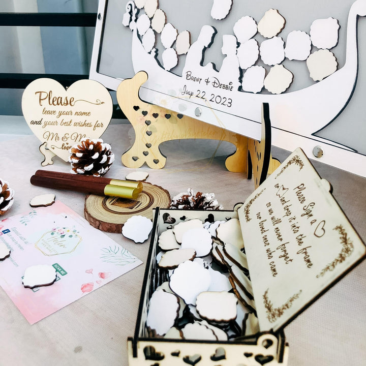 - Keep Your Wonderful Moment: Guests leave their names or wishes on wooden hearts, placing them within the message framework. After the event, hang this message book on your wall, a constant reminder of all the people who shared in creating beautiful memories.