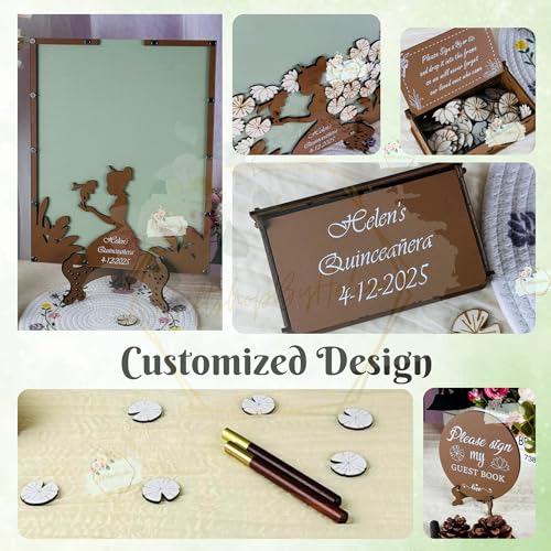 - ✨ Fairytale-Inspired Design – A magical guest book featuring a beautiful Princess & The Frog theme, perfect for creating unforgettable memories at your Quinceañera, Sweet 15, Sweet 16, or fairytale wedding celebration.