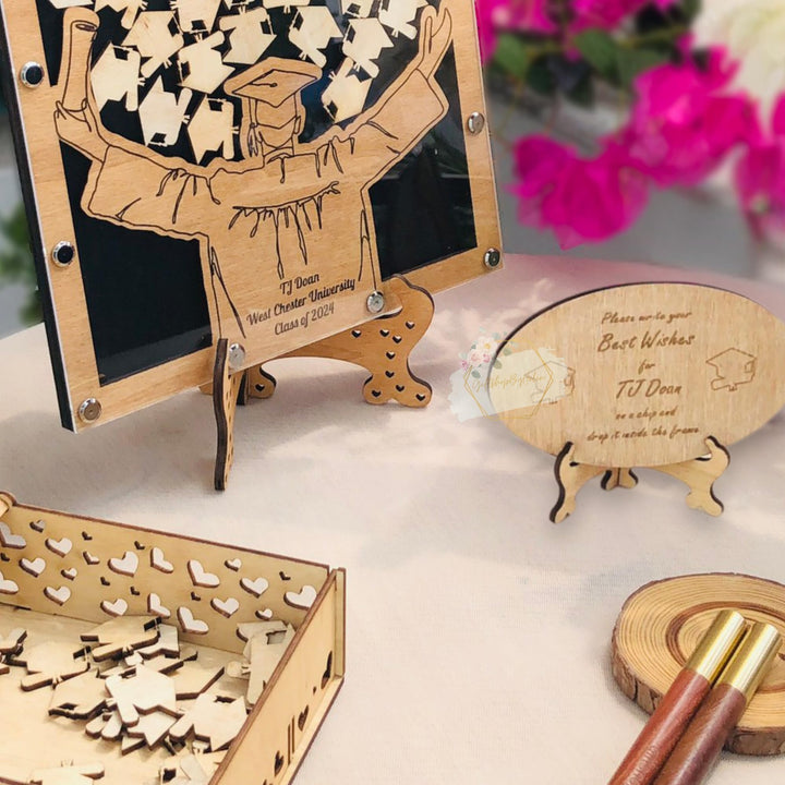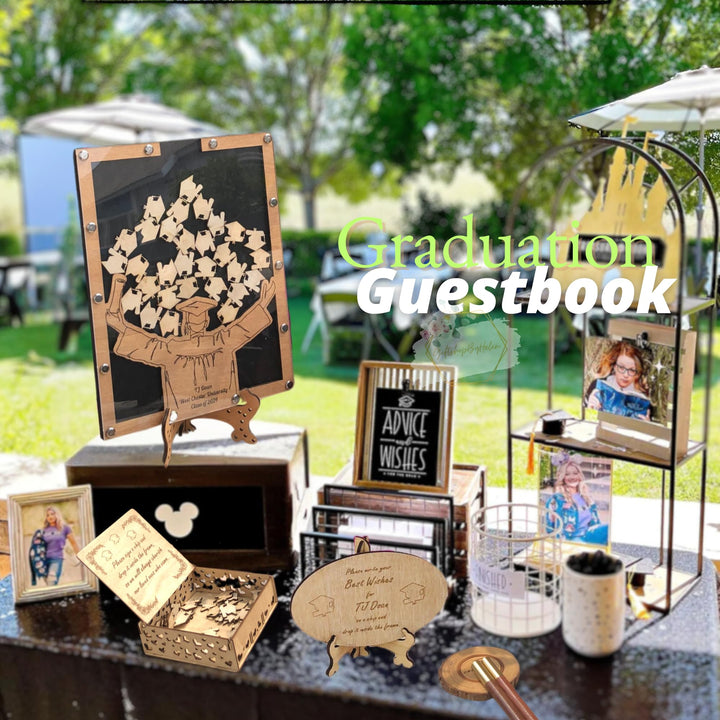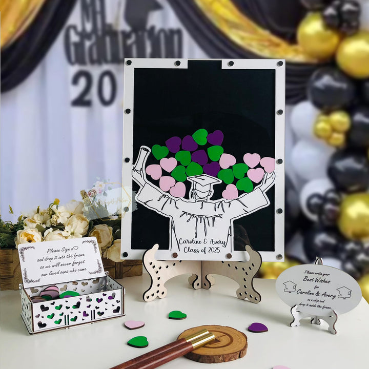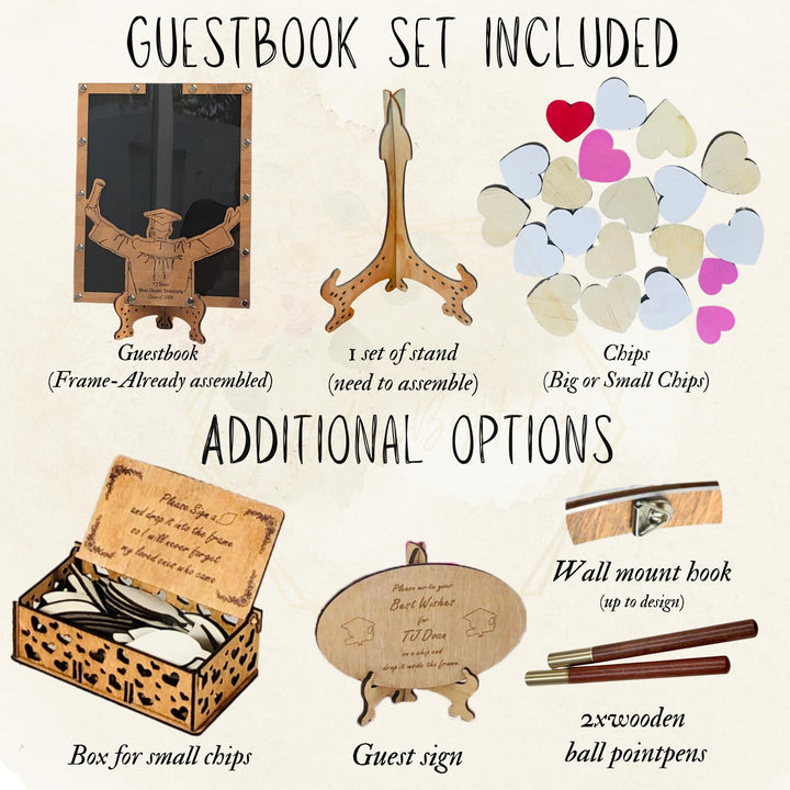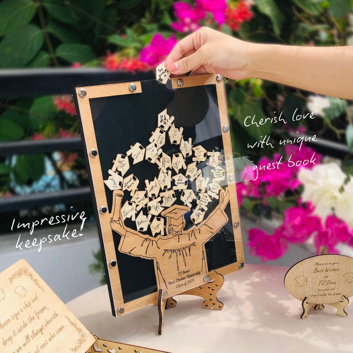 - [Not just a Guest Book] This interactive graduation guest book 2025 allows friends and family to write heartfelt messages on wooden chips and drop them into the frame. It’s a beautiful alternative to traditional signature books and enhances any guest book for graduation station. After the celebration, hang or stand this guest book in your room or school area as a meaningful piece of memory preserse. This guest book heart drop photo frame becomes a treasured reminder of love and support from your guests.