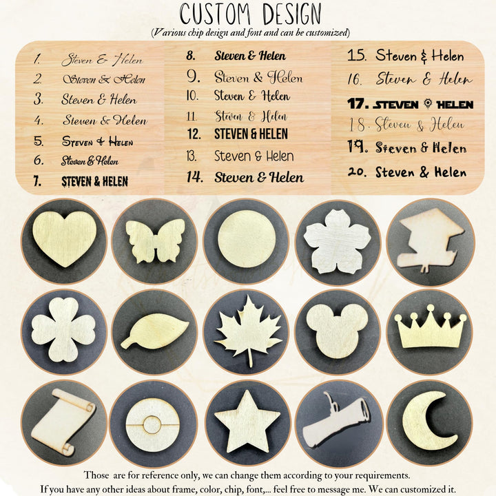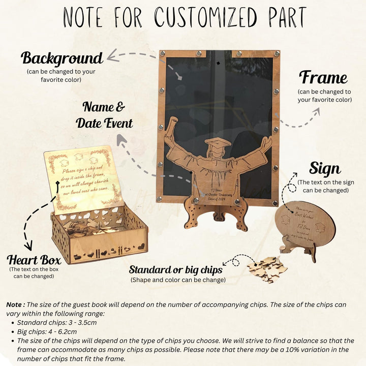 - [Easy to Customize]: Make it yours with this memory book alternative—click to customize names, dates, and chip shapes (like hearts) for up to 180 guests. This personalized guest book with a wooden guest book frame offers a personalized guest sign in that’s simple to tailor. Unlike typical guest book alternatives, this unique guest book blends any graduation party 2025 Decoration ideas with ease, ensuring your guest book matches your vision.