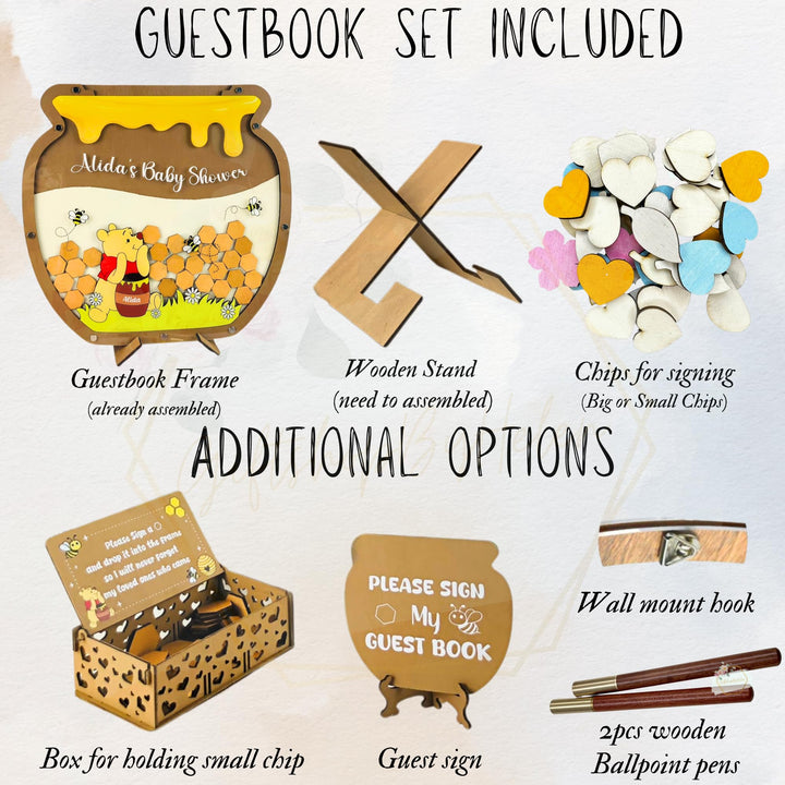 Honey Jar Design Personalized Guest Book Alternative for Baby Shower or Birthday Party Classic Bear-Themed Sign In Book for Guests to Leave Wishes Keepsake for Newborn or First Birthday