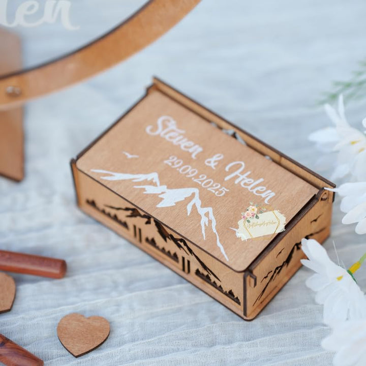 Mountain Wedding Guest Book Alternative | Personalized Round Wooden Drop Box for Nature Lovers | Rustic Minimalist Guestbook for Outdoor Ceremony & Reception