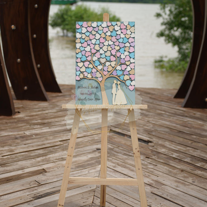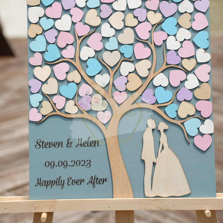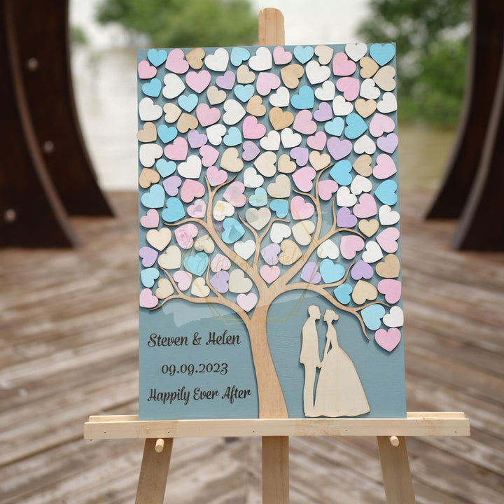 Personalized 3D Wedding Guest Book Alternatives, Wedding Guest Book 3D Heart Tree, Unique Personalized With Wooden Hearts For Guest Book Wedding, Customizable Wooden Wedding Guest Book