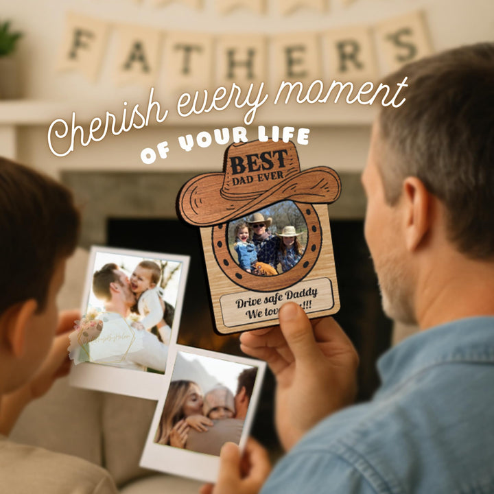 - Gift for Dad, Papa, or Grandpa: Whether it's from grandkids, daughter, or son, this is one of the best dad gifts from kids for Father’s Day. A cowboy magnetic picture frame that makes him smile with every drive.