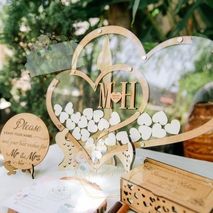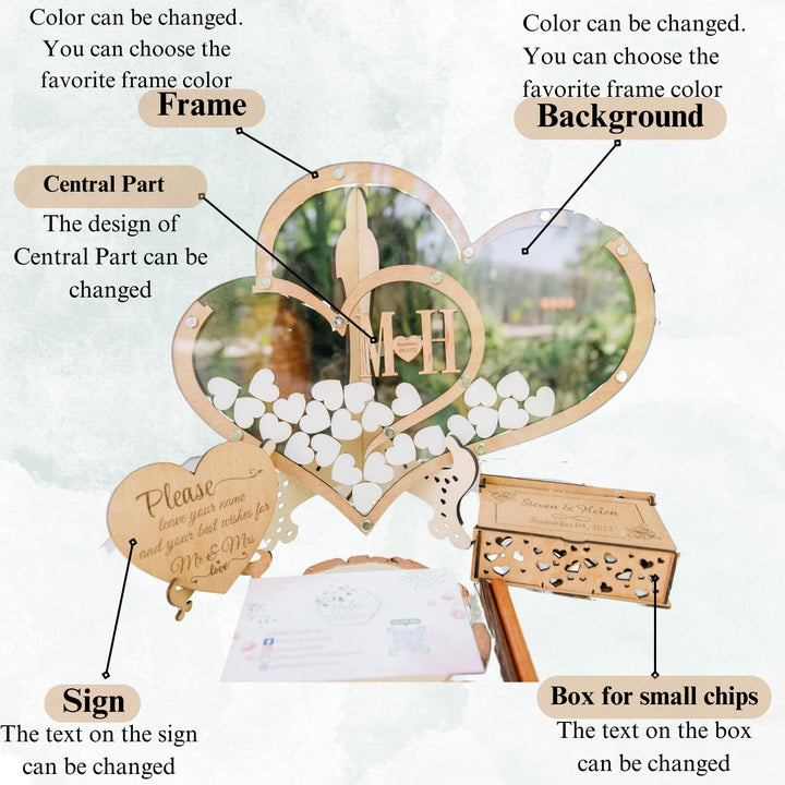 - Keep Your Wonderful Moment: Your guests leave their names or wishes in heart, and put them in the wedding message framework to record the individuals who shared in your celebration. After the event, you can use this message book to hang it on your wall to always remember all the people who are coming and all the beautiful memories created.