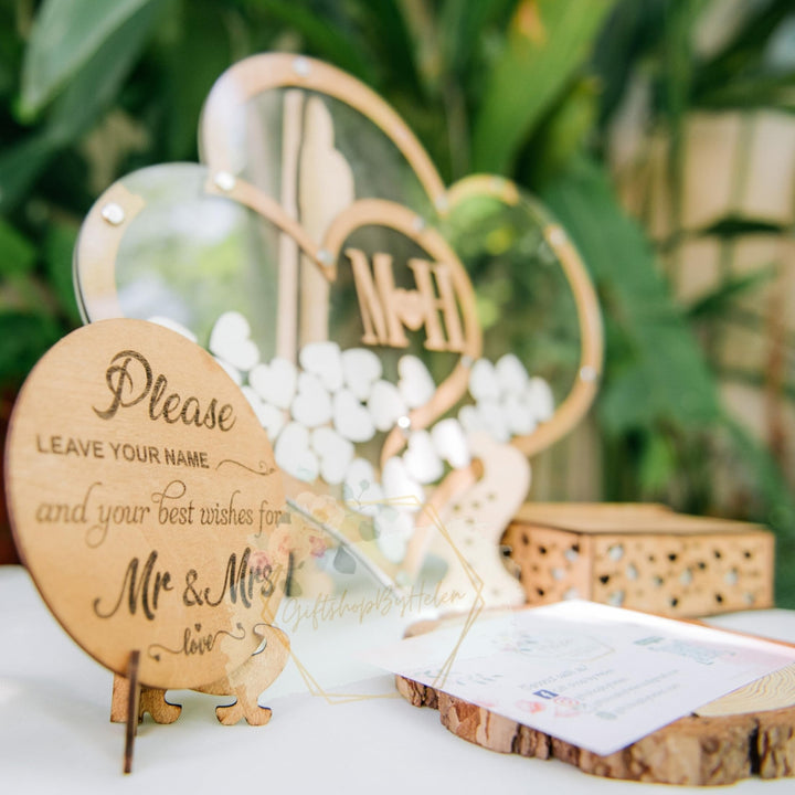 - Easy to Use: This guest book is incredibly easy to use. Guests simply need to write their well-wishes, sign their names on the wooden hearts, and place them in the box. Click 'Customize & Add to Cart' to choose your monogram and provide the exact personalization you want to include on your guestbook.