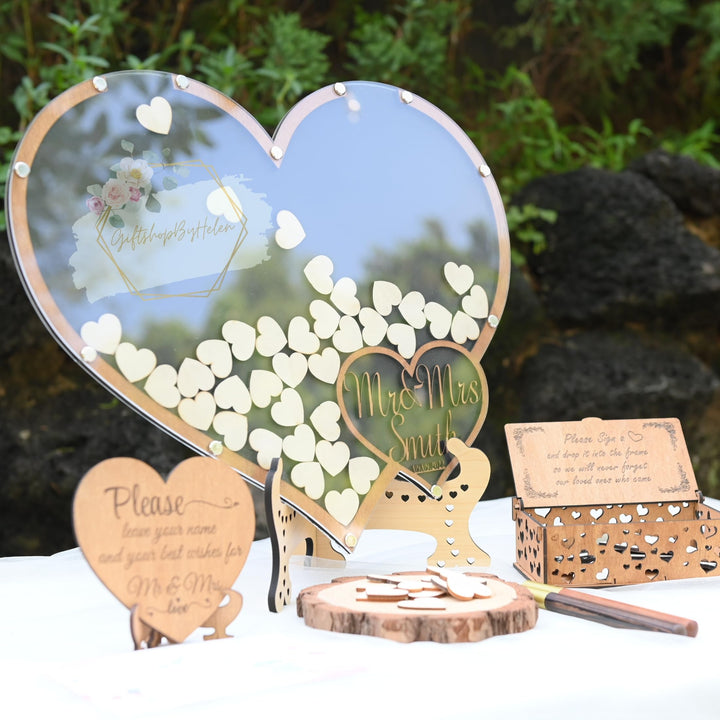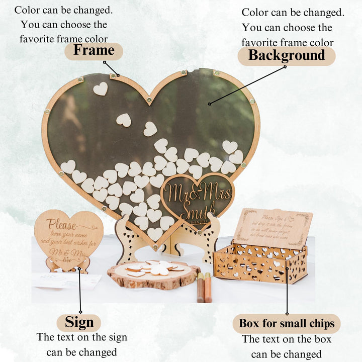 - Unforgettable Memory: Change the way you remember your special day. Forget the traditional signature wedding books and invite them to leave a lasting impression with our unique framed wooden hearts. This is a keepsake you'll cherish forever.