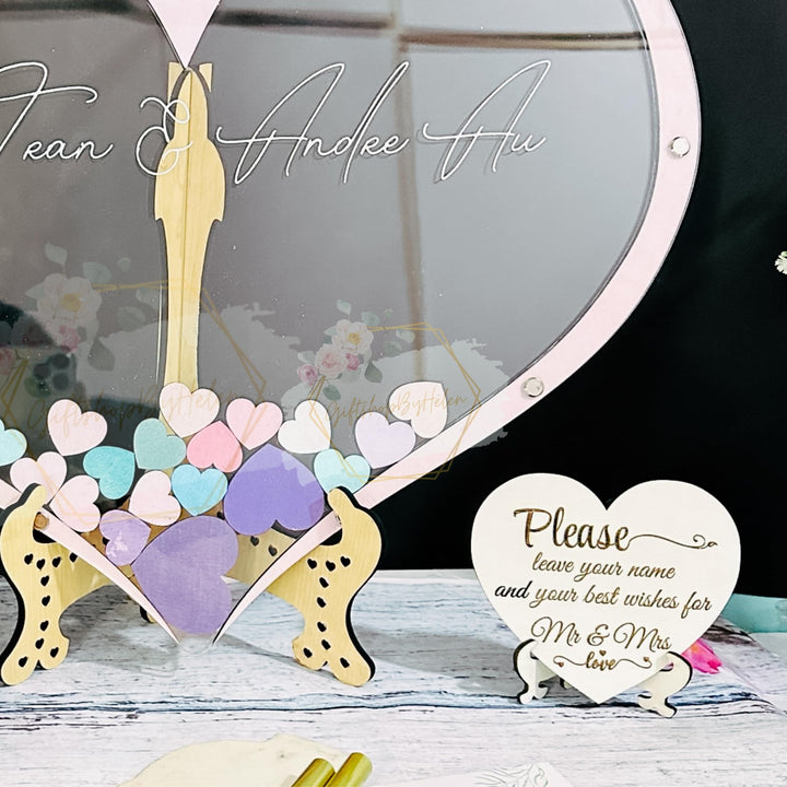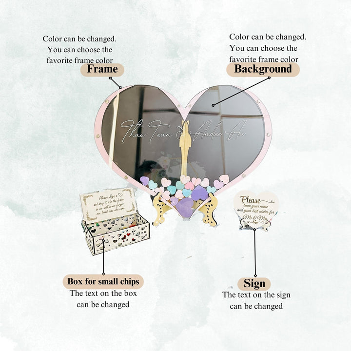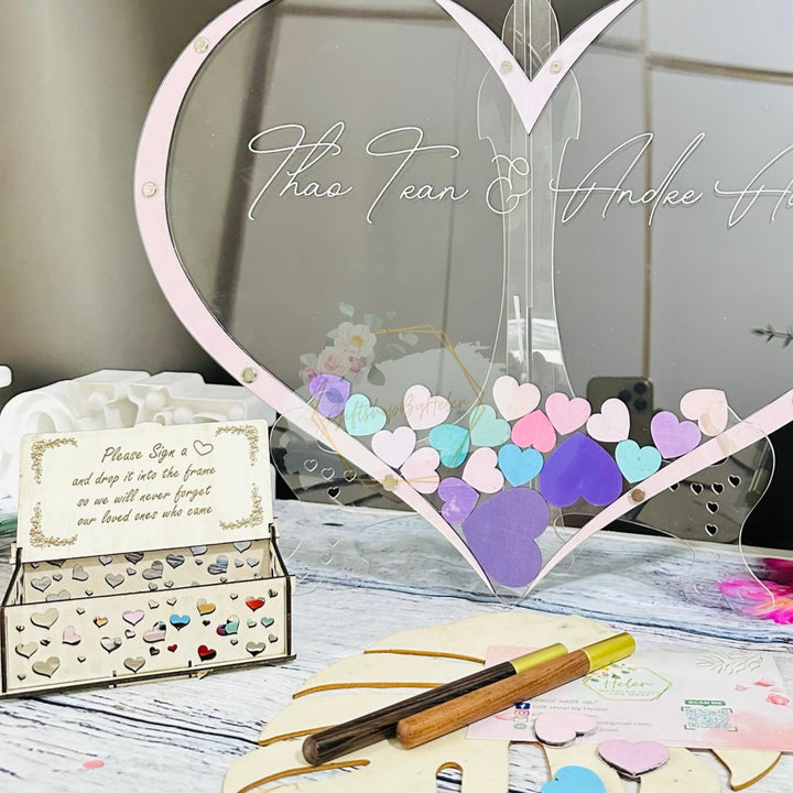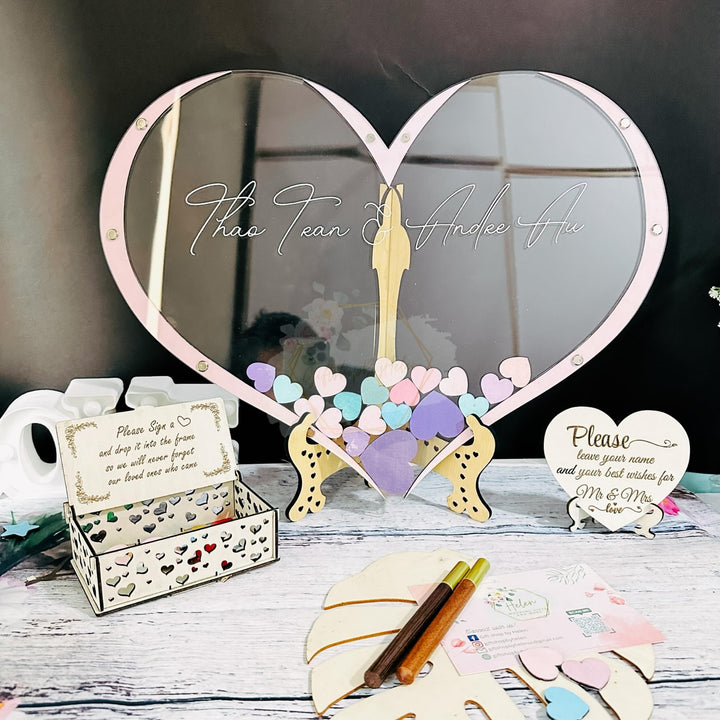 - Keep Your Wonderful Moment: Your guests leave their names or wishes in heart, and put them in the wedding message framework to record the individuals who shared in your celebration. After the event, you can use this message book to hang it on your wall to always remember all the people who are coming and all the beautiful memories created.
