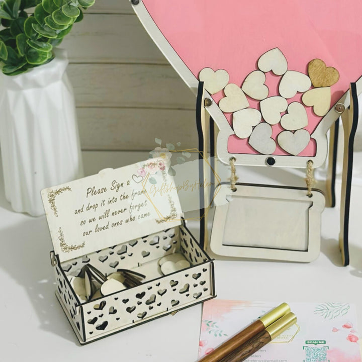 - Keep Your Wonderful Moment: Guests leave their names or wishes on wooden hearts, placing them within the message framework. After the event, hang this message book on your wall, a constant reminder of all the people who shared in creating beautiful memories.