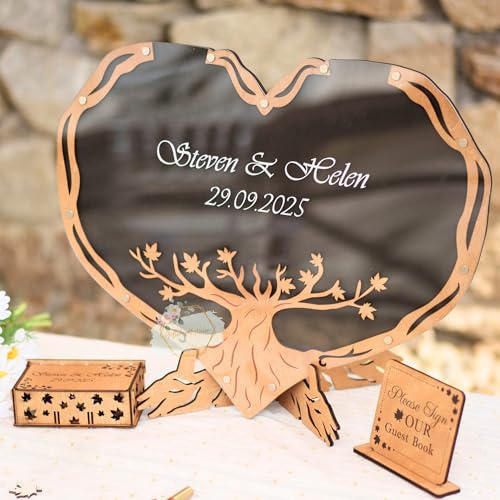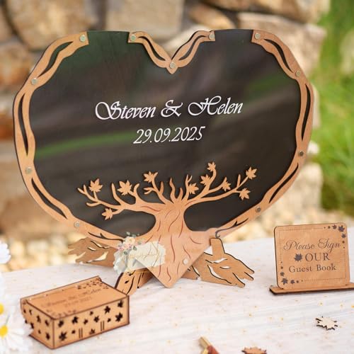 - π IMMORTALIZE YOUR LOVE STORY WITH A PERSONALIZED MAPLE TREE HEART GUEST BOOK. Our wooden guest book alternative boasts a captivating heart shaped guest book design with an elegant maple tree guest book motif. This personalized wooden guestbook is the ultimate rustic wedding guest book or boho wedding sign in book, perfectly suited for any tree guest book for wedding or custom heart guest book desire.