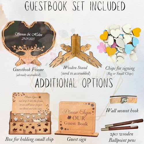 - π ORDER YOUR CUSTOMIZABLE GUEST BOOK WEDDING PIECE TODAY & START CREATING UNFORGETTABLE MEMORIES! This wedding memory book wood is an ideal bridal shower sign in frame or guest book for signatures wood, serving as a beautiful heart drop box for wedding. A truly thoughtful wedding party gifts or unique wedding favors for guests; customize your engraved wood guest book now for a lifetime of cherished memories!