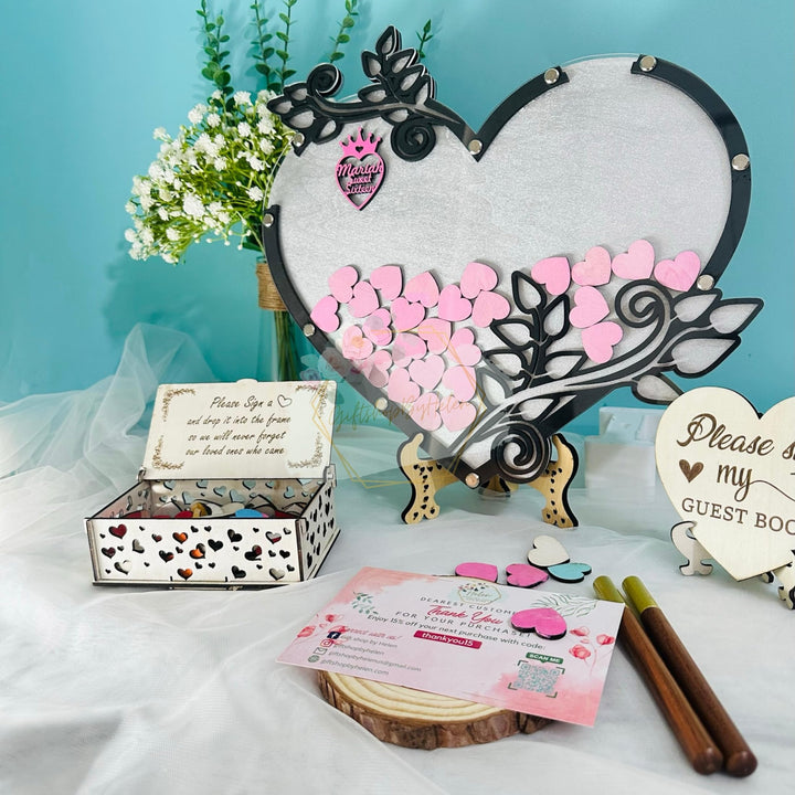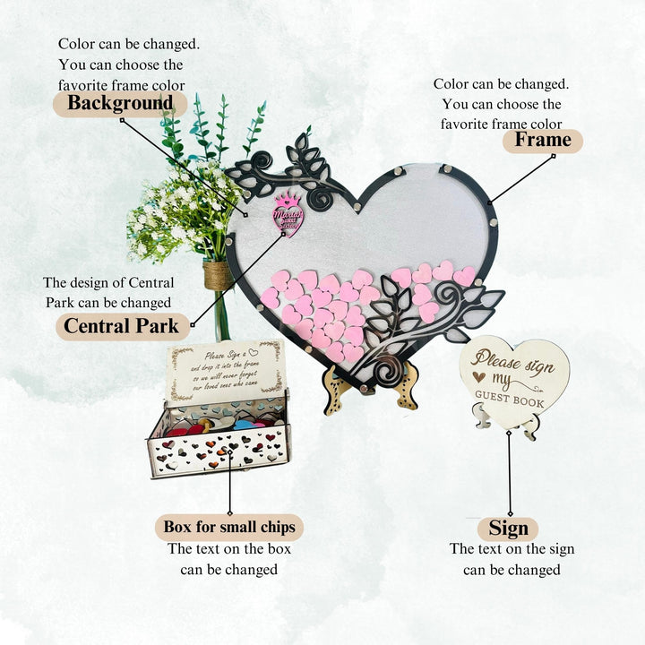 - Keep Your Wonderful Moment: Your guests leave their names or wishes in heart, and put them in the wedding message framework to record the individuals who shared in your celebration. After the event, you can use this message book to hang it on your wall to always remember all the people who are coming and all the beautiful memories created.