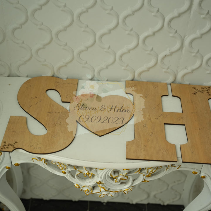Details: A Wooden Letter Guest Book is a unique and charming way to capture memories from special occasions. This innovative guest book alternative takes the form of large wooden letters, typically representing the initials of the couple getting married or the theme of the event. Instead of the traditional guest book pages, guests are encouraged to sign or leave messages on these wooden letters, creating a one-of-a-kind keepsake that can be proudly displayed in your home. Size of Guest book: 12" - 30cm 16" - 40cm 18" - 45cm 20" - 50cm 22" - 55cm 24" - 60cm 26" - 65cm Each set includes: Letter guest book - 02 wooden pens (optional). The procuct does not include a stand On the photos you can see where your personalization will be placed. Please note that it is different for each letter. If you want to change it please let us know. This creative twist on a classic tradition not only serves as a guest book but also doubles as a beautiful piece of personalized decor, making it a meaningful and eye-catching addition to any event, from weddings to milestone birthdays and beyond. Wooden Letter Guest Books are becoming increasingly popular for their rustic, sentimental, and customizable appeal. Pay attention: That color and texture of wood can little differ from the listing presented on a photo. Each piece of wood has a unique structure and texture. Total color of a product depends on it. You can choose the size, color, shape in the options panel. Also settings of your monitor can influence a color rendition.