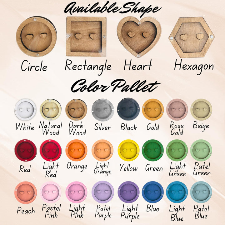- [Make It Truly Yours] – Choose the shape, wood tone, and one of 12 romantic printed acrylic designs. This wooden ring box wedding day gift is fully customizable.