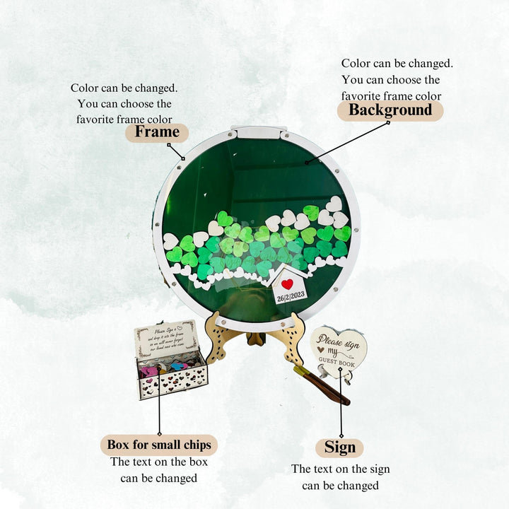 - Keep Your Wonderful Moment: Your guests leave their names or wishes in heart, and put them in the wedding message framework to record the individuals who shared in your celebration. After the event, you can use this message book to hang it on your wall to always remember all the people who are coming and all the beautiful memories created.