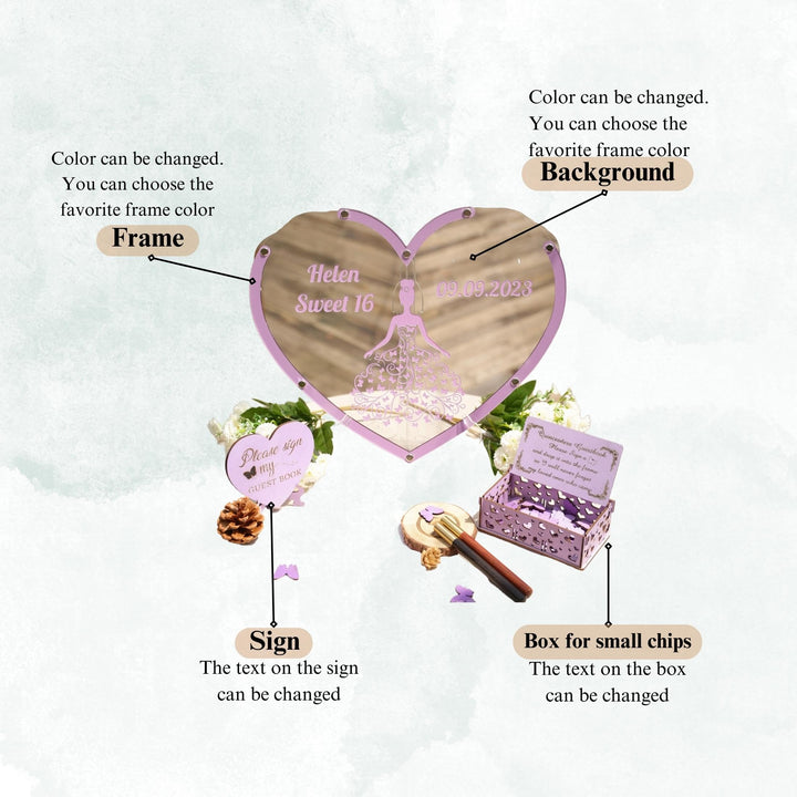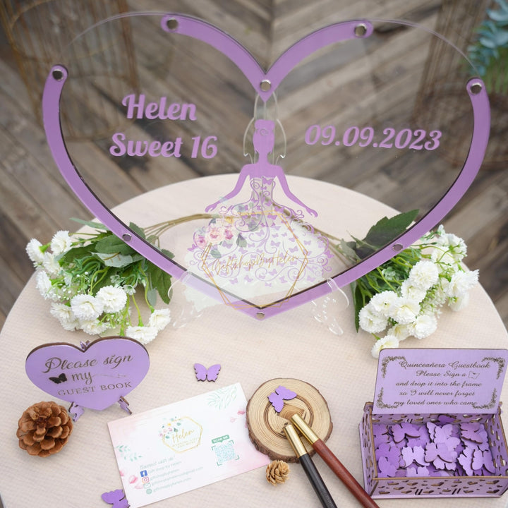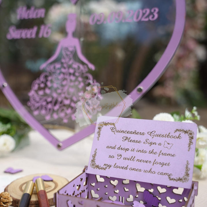 Quinceañera Heart Guest Book Personalized - Princess Alternative Guest Book Frame - Idea for Customized Mis Quince, Wedding, 15th Birthday Baby Shower, Sweet 16 Quinceañera Guest Book Alternatives