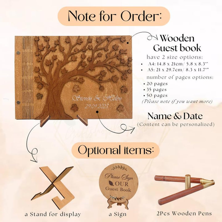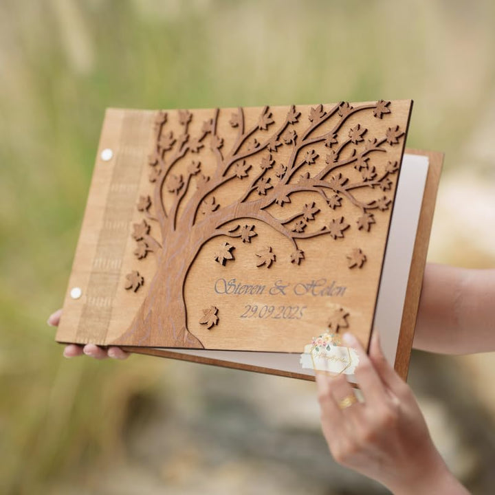 - ๐ [Crafted To Last From โI Doโ To Ever After.] Made from premium wood with stunning detail tree detailing, this guestbook is more than a sign-in โ itโs a wedding anniversary guest book, small guest book, or couple scrapbook that holds your most cherished memories.