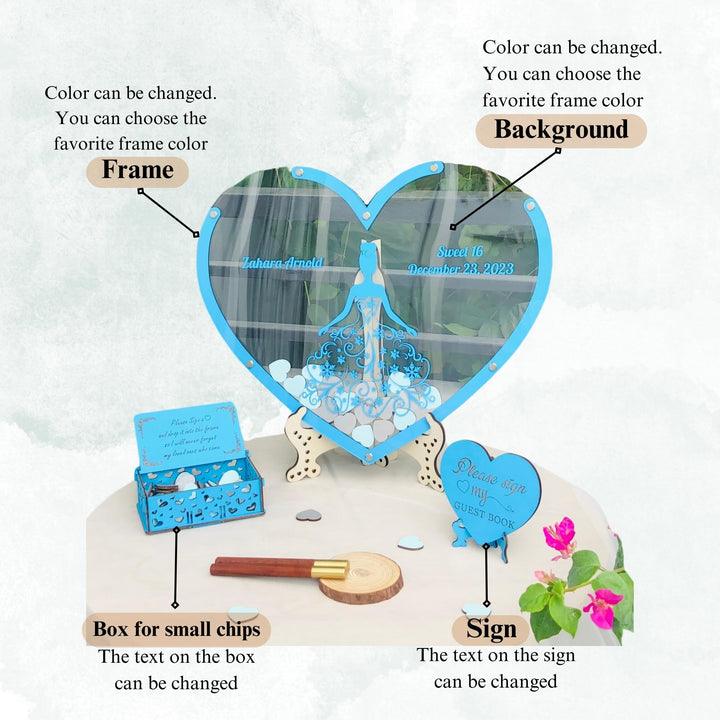 Sweet 15 Quinceanera Guest Book Alternative - Unique Wooden Heart Guest Book Alternatives - Quince Guest Book Alternative Decoration - Gift For Your Daughter Birthday