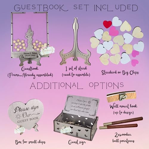 - 💜 Easy & Fun for Guests – Guests sign wooden hearts and drop them into the frame, creating a unique memory collection.