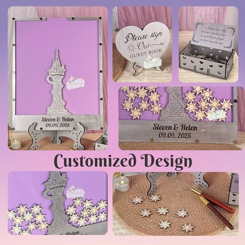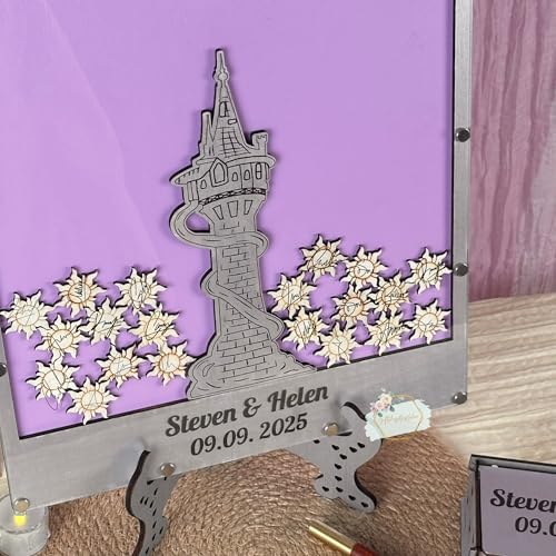 Tangled Guest Book for Wedding | Rapunzel Tower Guest Book Alternative | Fairytale Wedding Guestbook | Personalized Wooden Sign In Book Keepsake