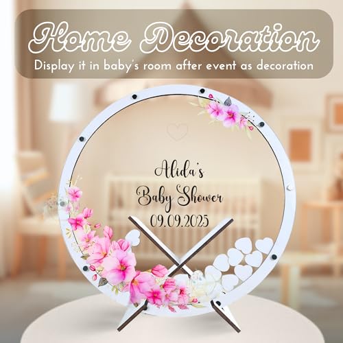 Unique Baby Shower Gift - Personalized Baby in Bloom Guest Book Alternative | Circle Floral Wooden Sign-In Frame | Ideal New Baby New Parents Present & Nursery Keepsake