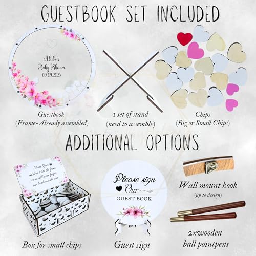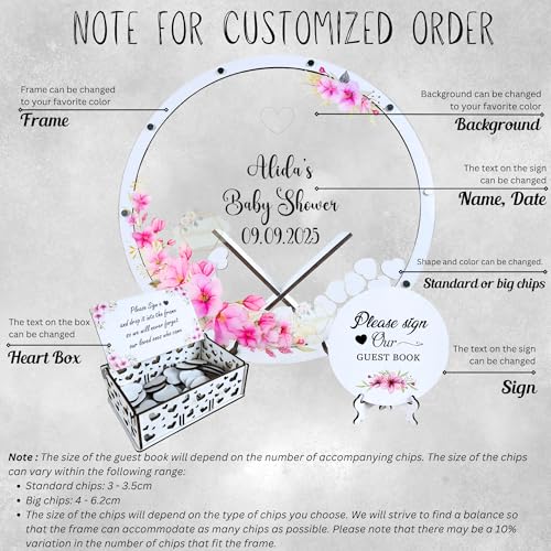 - ✨ [Easy to Customize]: Choose the size of the guest book according to the number of your guests. Add your names, your date, your color, choose chip shape, chip colors, and frame finish to match your party aesthetic. We create each product according to an individual order and take into account all customer wishes. So, the customer themselves configures the product as they wants.