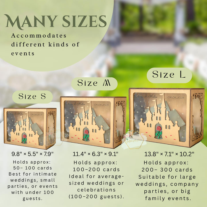 - 💕[EASY TO CUSTOMIZE] Choose the size of the card box according to the number of your guests. We create each product according to an individual order and take into account all customer wishes. You can choose one of the designs with your name or initials and date as you wish with different shapes of center inside.